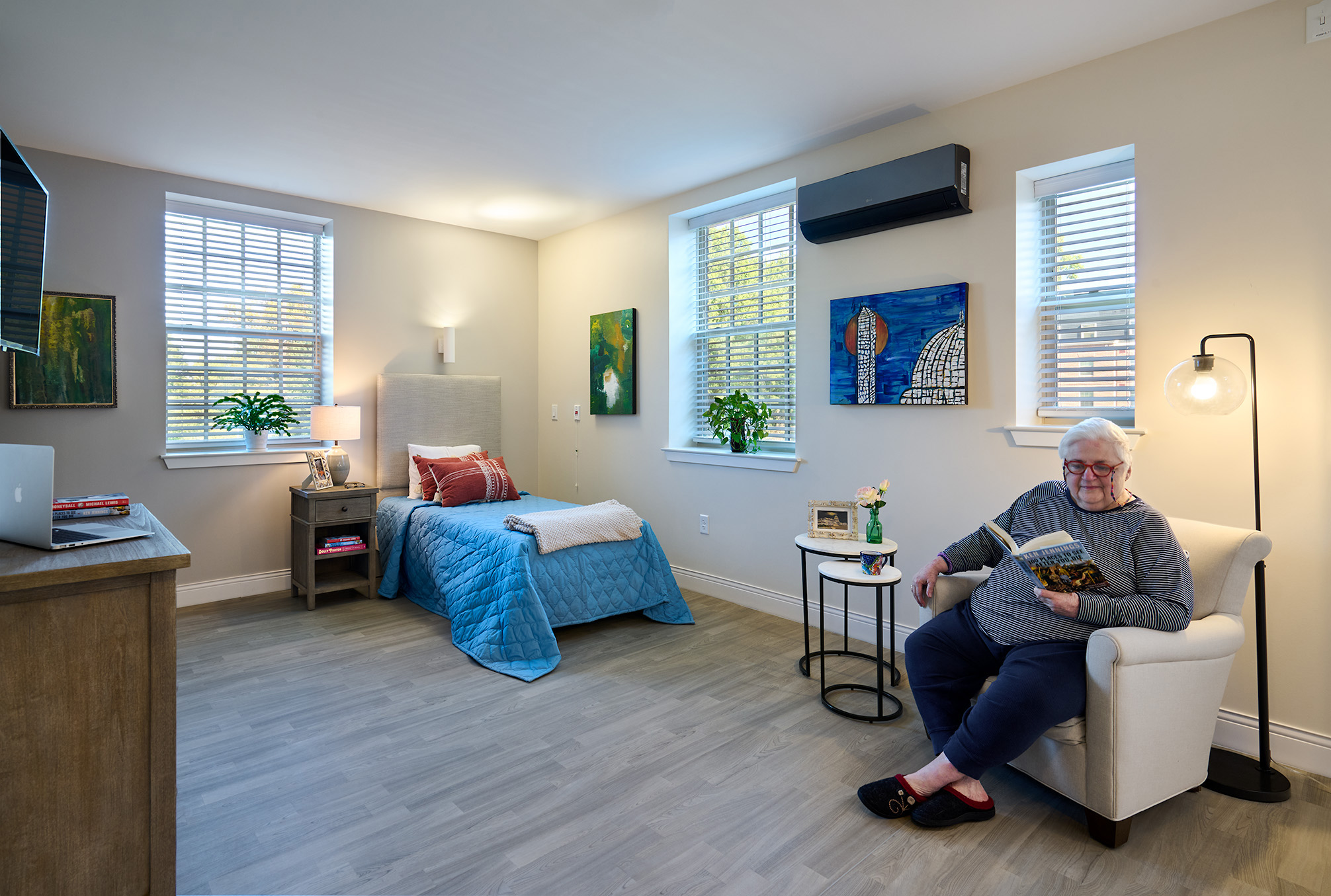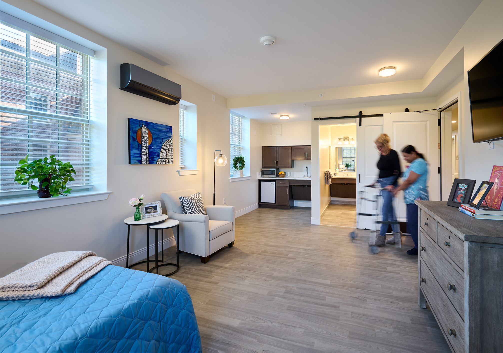 This project included a full gut renovation after the building suffered a major flood from a broken sprinkler pipe. The new design included adding more units, creating beautifully appointed amenity spaces, restoring wood paneling, updating electrical, plumbing, and mechanical systems, and repurposing unused spaces to create an exceptional home for low-income seniors.